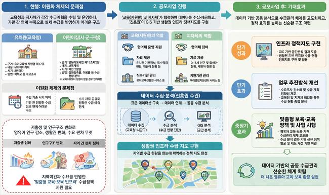 선정된 지역에서는 6월부터 내년 2월까지 실무협의체가 운영된다. 교육청과 지자체 담당자, 보육진흥원, 공간정보 전문가 등이 참여해 데이터 분석과 정책지도 개발을 공동으로 추진한다.